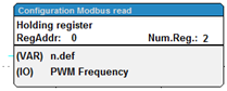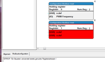 This function block is the interface between the variables and the I/Os to the Modbus. The block does not have a processing function. That means, that blocks of this kind have to be called at least once to announce the configuration in the controller before a communication over Modbus can take place. Further calls of the blocks are not necessary, but they also do not have further influence on the application.
