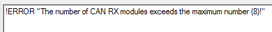 Max. 8 RX messages can be configured. Further messages will be marked as errors.