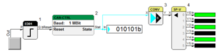 The controller status is given out binary. To receive the single bits, an adapter and a bit vector has to be used.