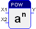 This function block computes the exponentiation with the base X1 and the exponent X2, i.e. X1 raised to the power of X2. The result is presented at the output Y.