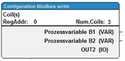 This function block is the interface between the variables and the I/Os to the Modbus. The block does not have a processing function. That means, that blocks of this kind have to be called at least once to announce the configuration in the controller before a communication over Modbus can take place. Further calls of the blocks are not necessary, but they also do not have further influence on the application.