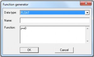 Through the parameter dialog the data type can be assigned. Additionally, a short description about the appearance in the function block as well as the actual mathematical function can be entered.