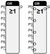 This function block computes the logical OR of up to 8 input BIT signals. This means the output is logical 1 if any of the input signals is logical 1. All input signals, as well as the output signal can be negated.