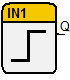This function block reads the signal from one of the digital input ports (IN1 or IN2) and provides this signal at the output Q to be used within the program.